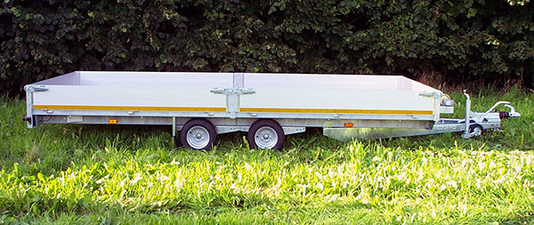 En plus de la location des vans pour le transport de chevaux, nous proposons deux autres types de remorques : une remorque plateau et une remorque bâchée.