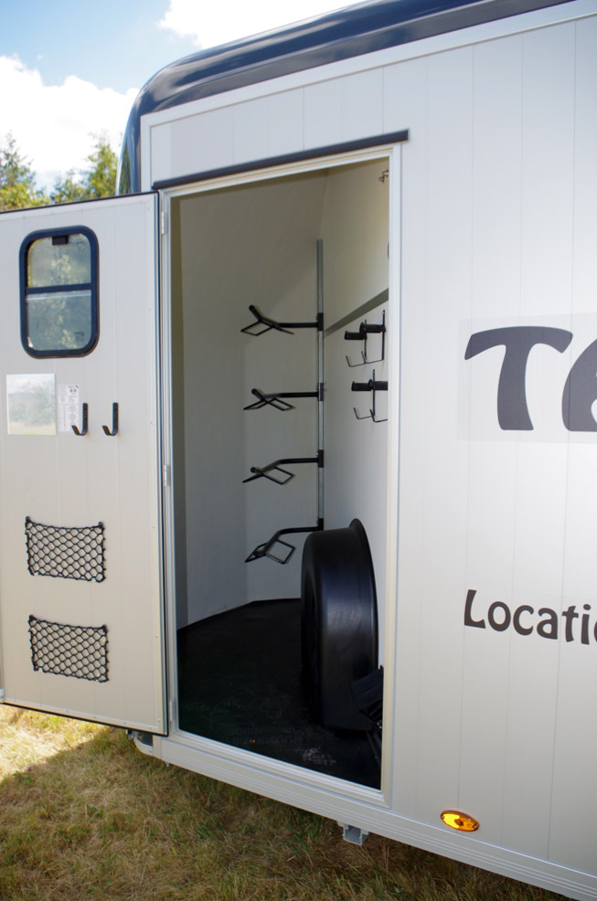 | Roue de secours + TrailerAid (possibilité de changer une roue crevée sans cric et sans décharger les chevaux). | |