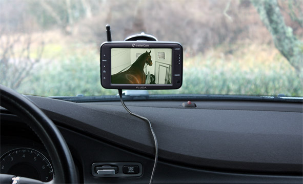 | Caméra vidéo sans fil pour surveiller les chevaux durant le transport (la caméra est équipée d'un système de vision nocturne à infra-rouge et est utilisable dans n'importe quelle voiture). | |