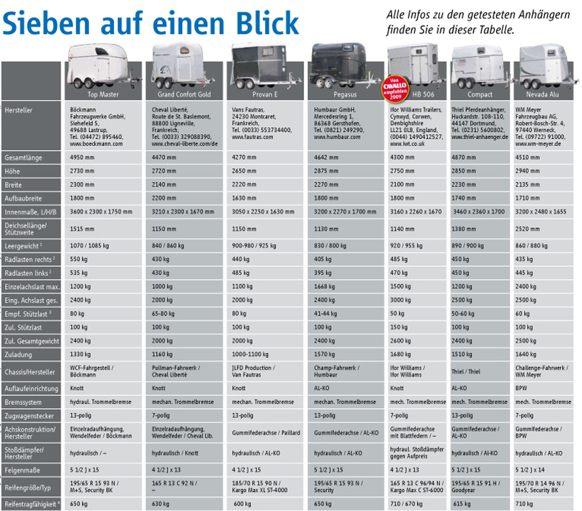 En 2009, la revue allemande CAVALLO (voir le site internet) a publié un test comparatif de quelques vans. Le test est visible sur cette page (l'article est en Allemand).